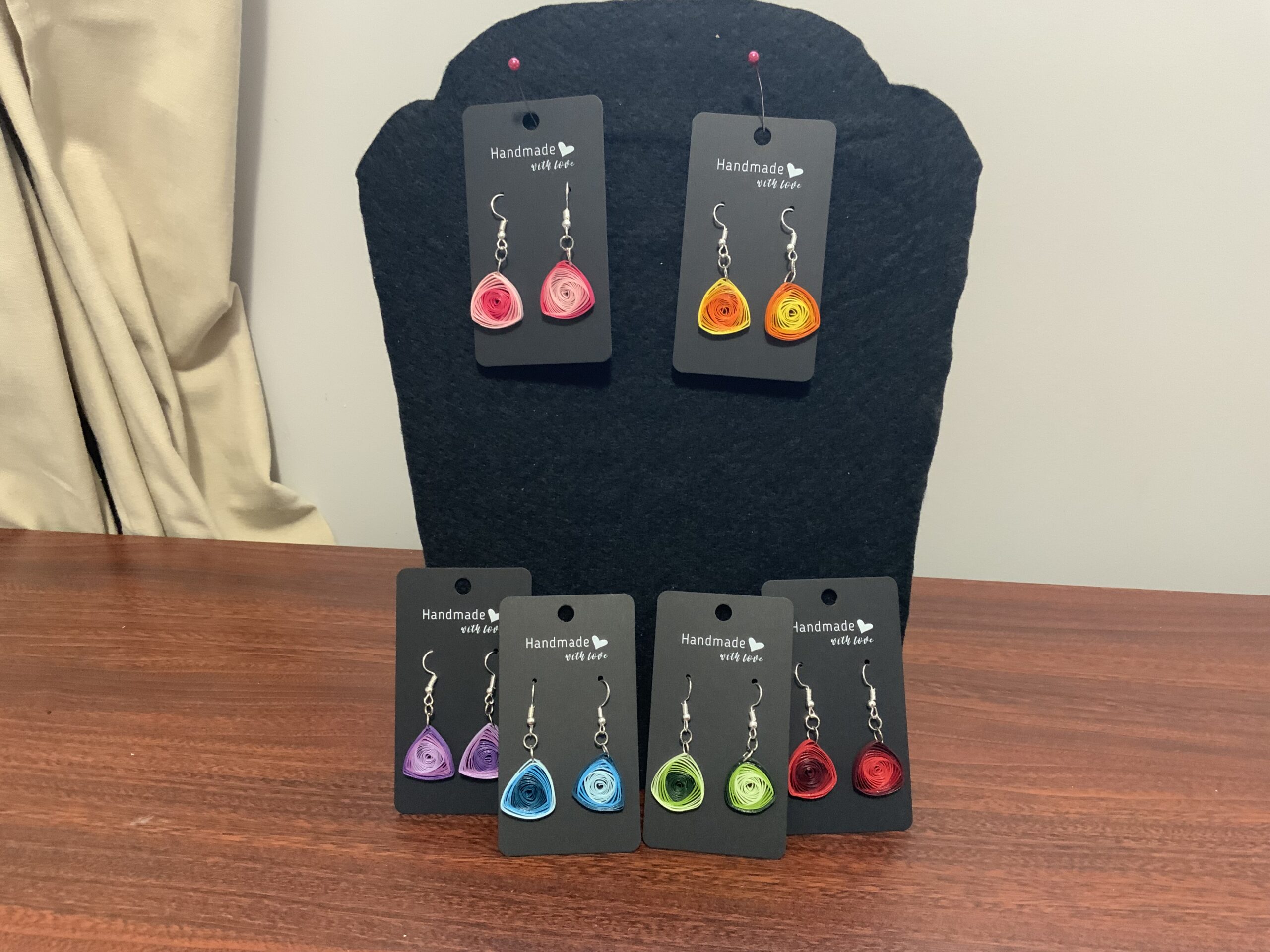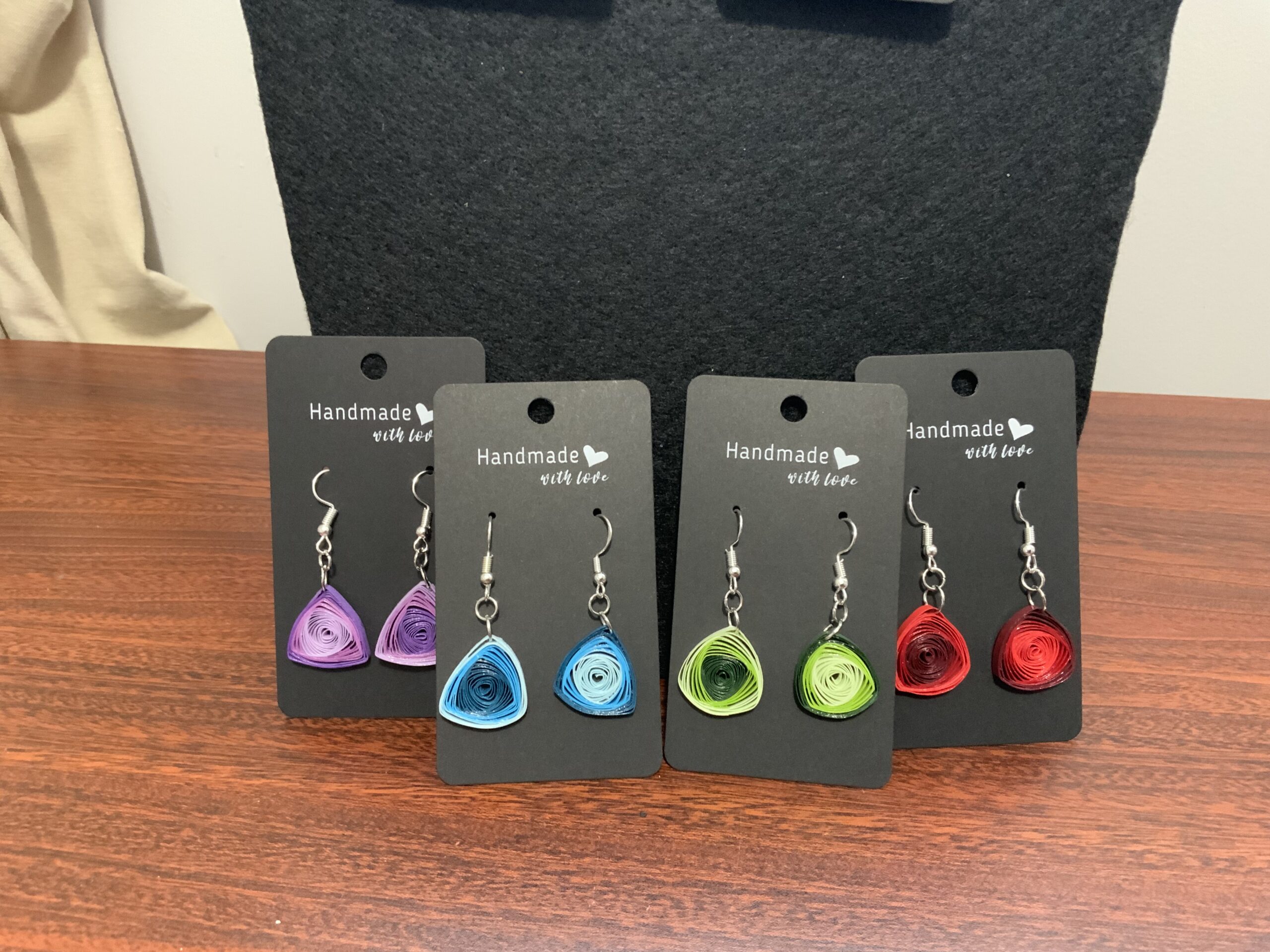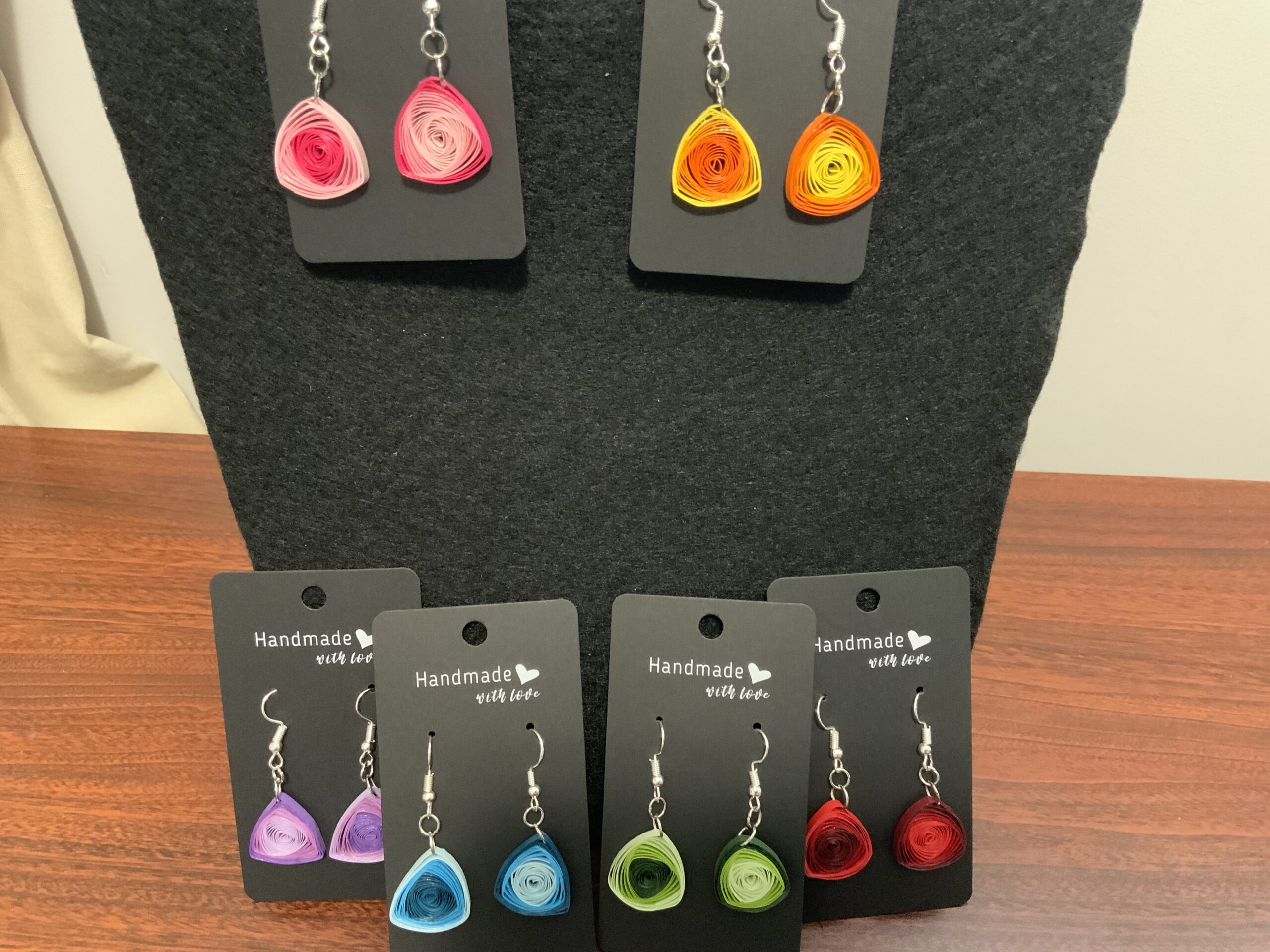 Add a swirl of elegance to your look with these handmade quilled vortex earrings, a perfect blend of artistic craftsmanship and lightweight design. Carefully crafted using high-quality quilling paper and sealed for durability, each pair showcases a stunning spiral vortex pattern, making them a true statement piece.