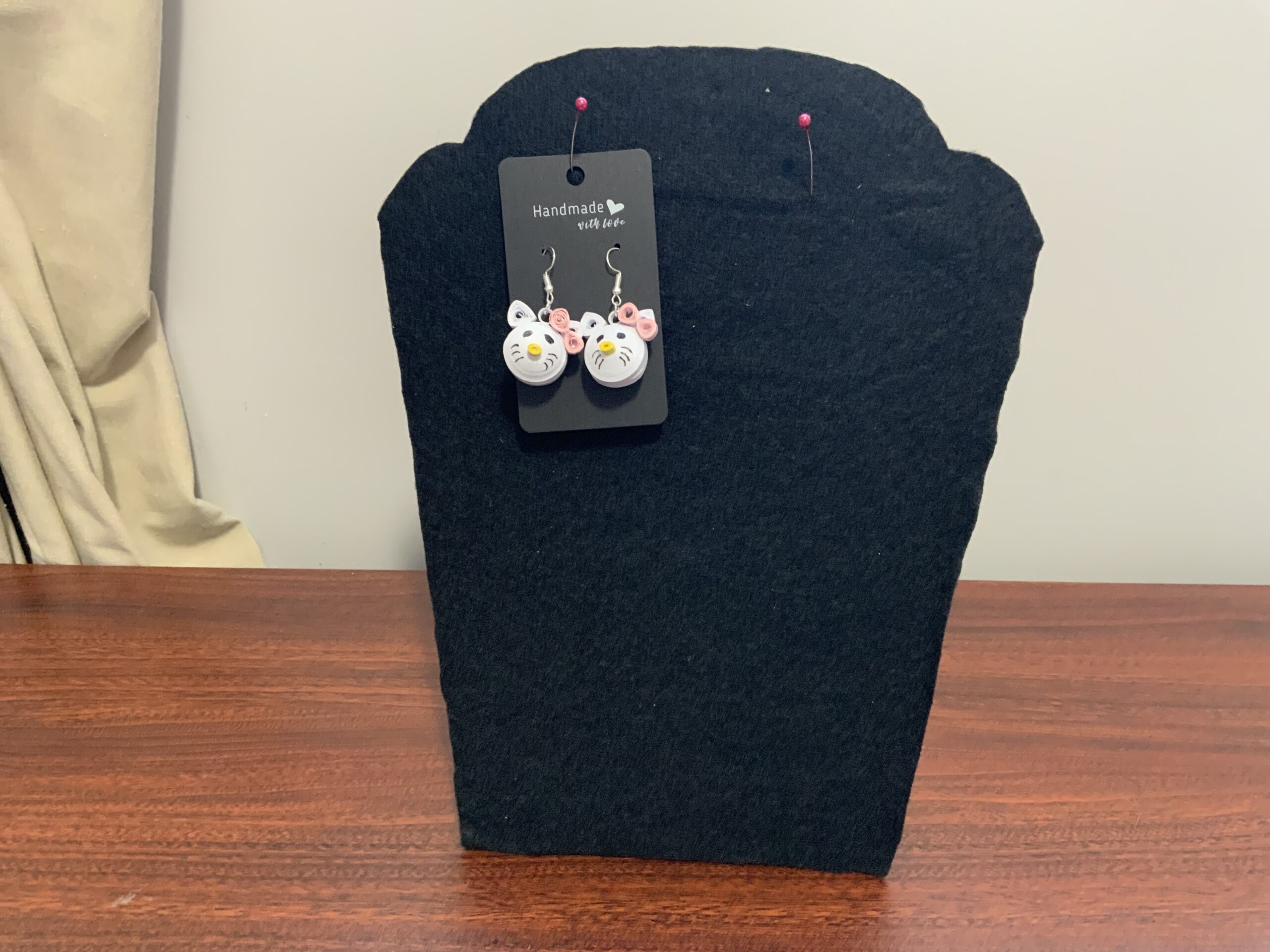 These adorable, handcrafted quilled earrings are a delightful way to show your love for Hello Kitty! Made with care and creativity, each pair is lightweight, colorful, and uniquely charming—perfect for everyday wear or as a thoughtful gift.