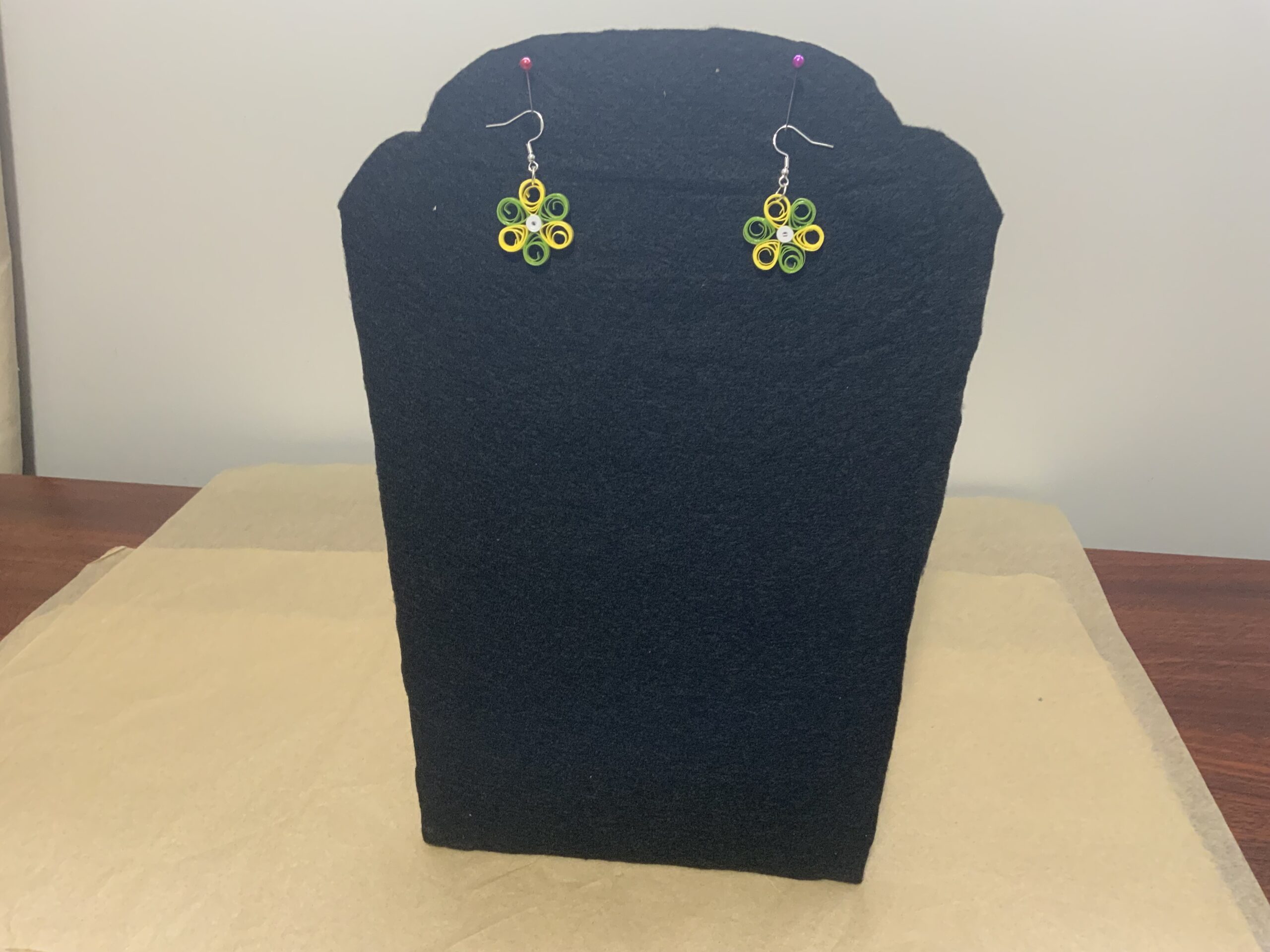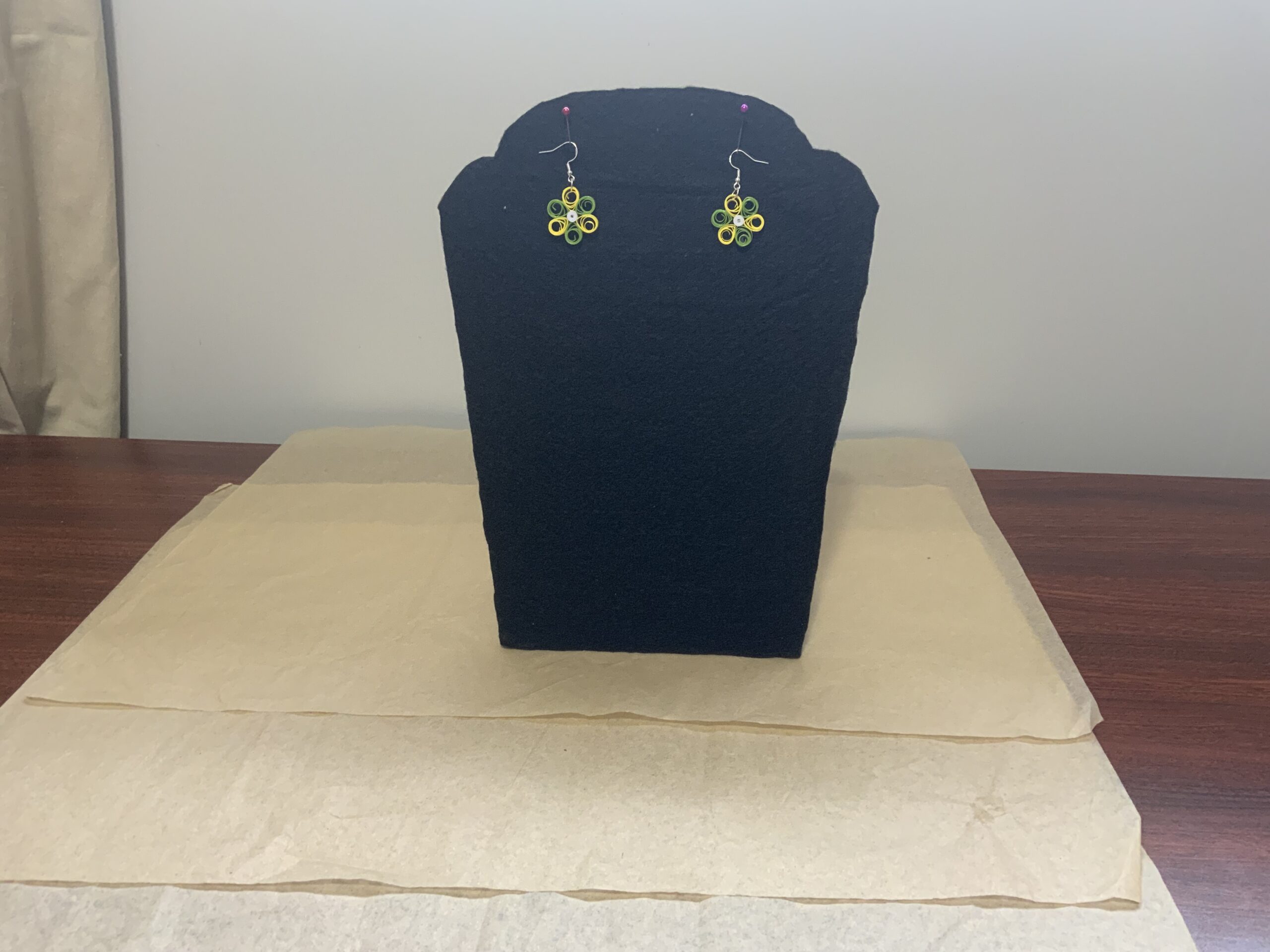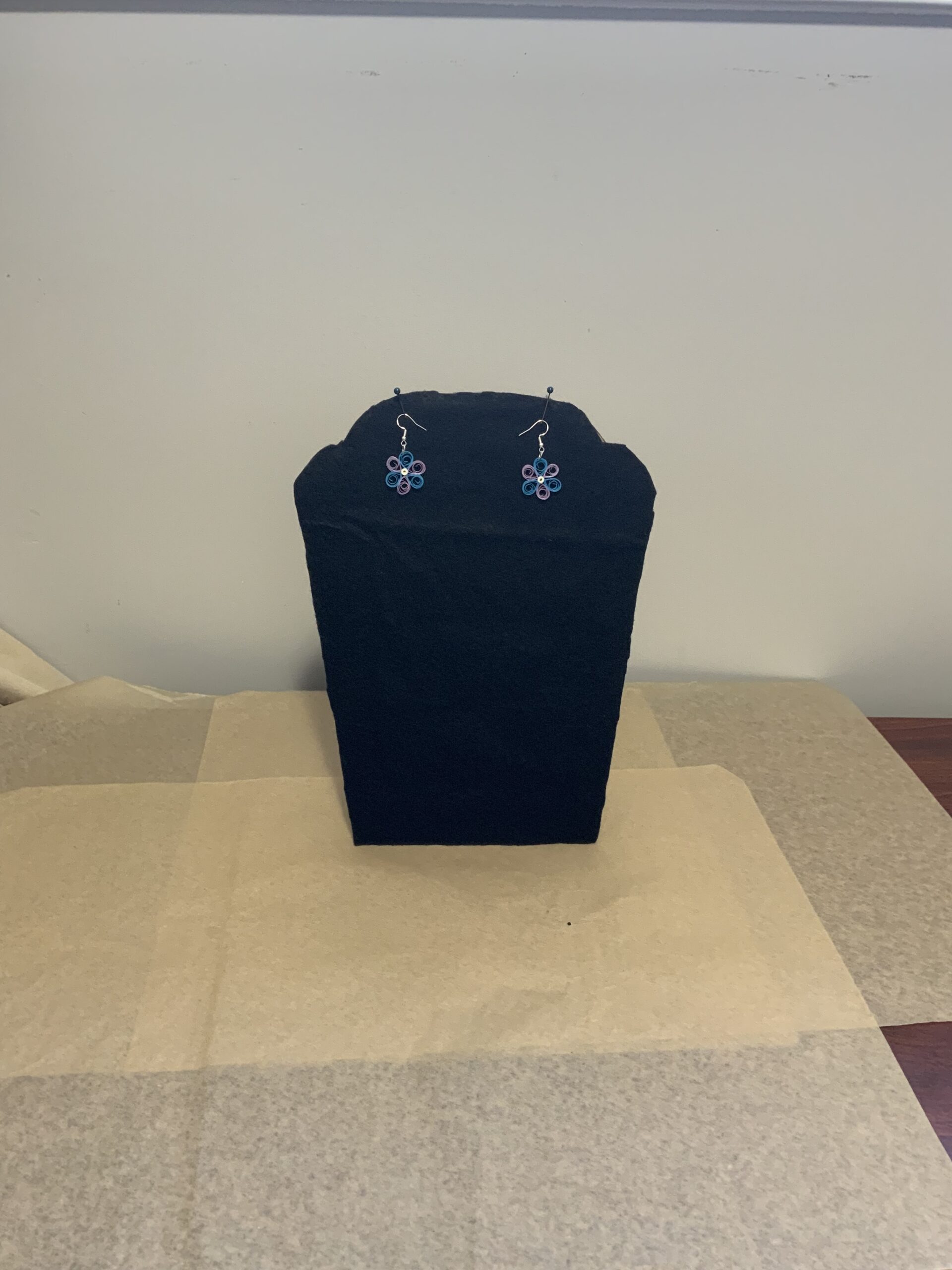 These earrings are water-resistant but not waterproof. Avoid wearing in the rain, shower, or while swimming. If exposed to water, gently blot with a paper towel and let air dry. Treat quilled jewelry like fine jewelry for best results.