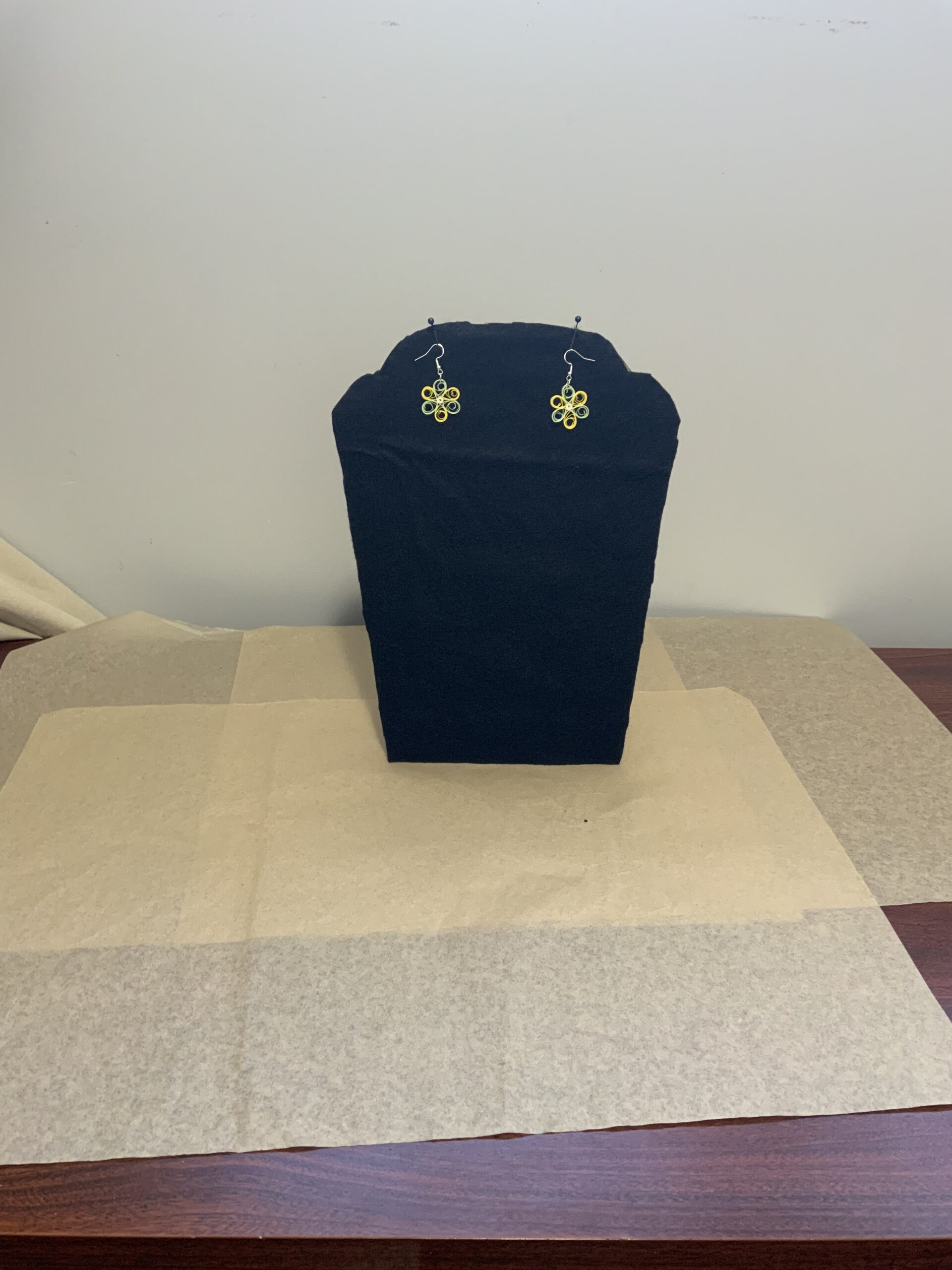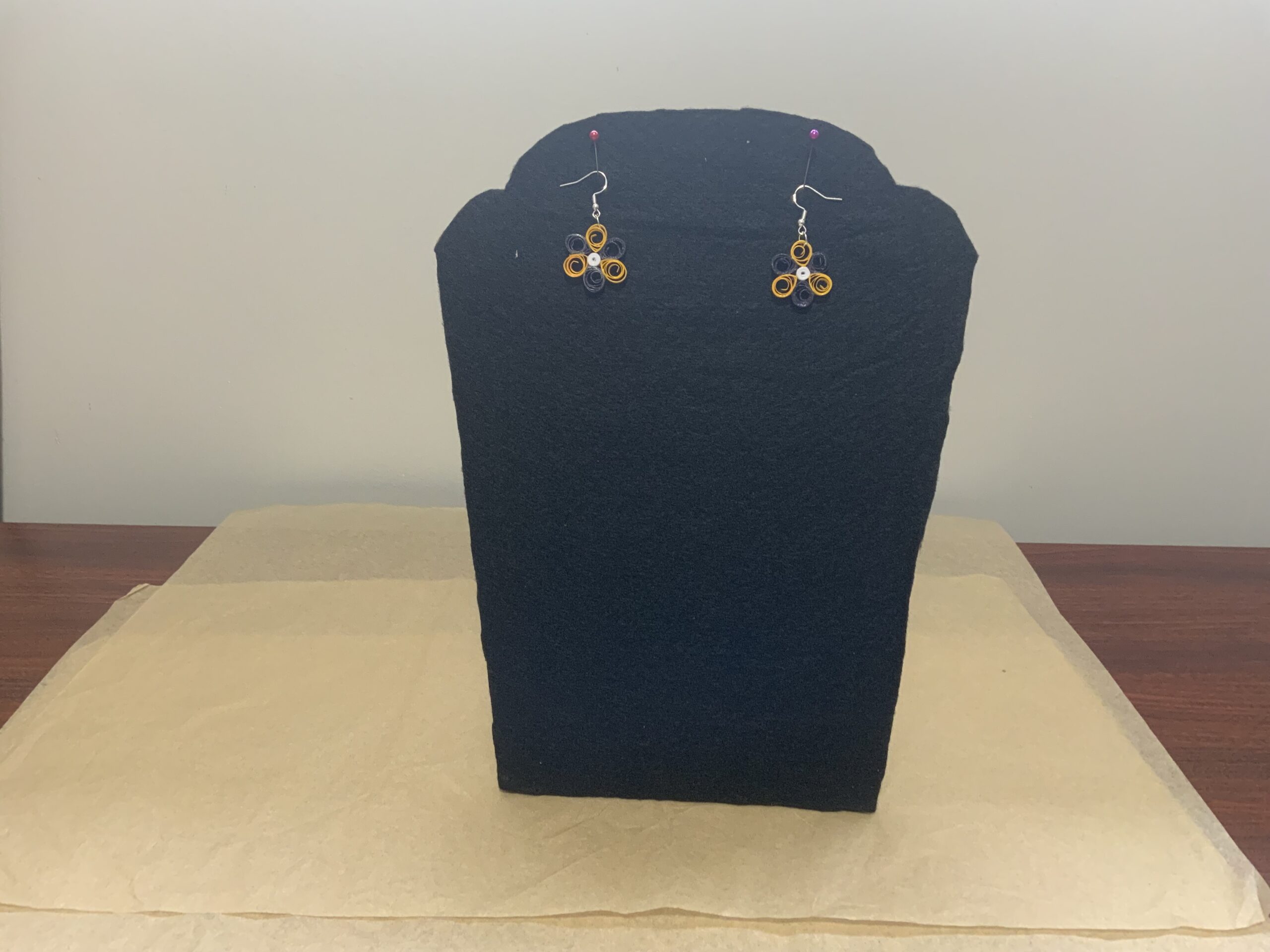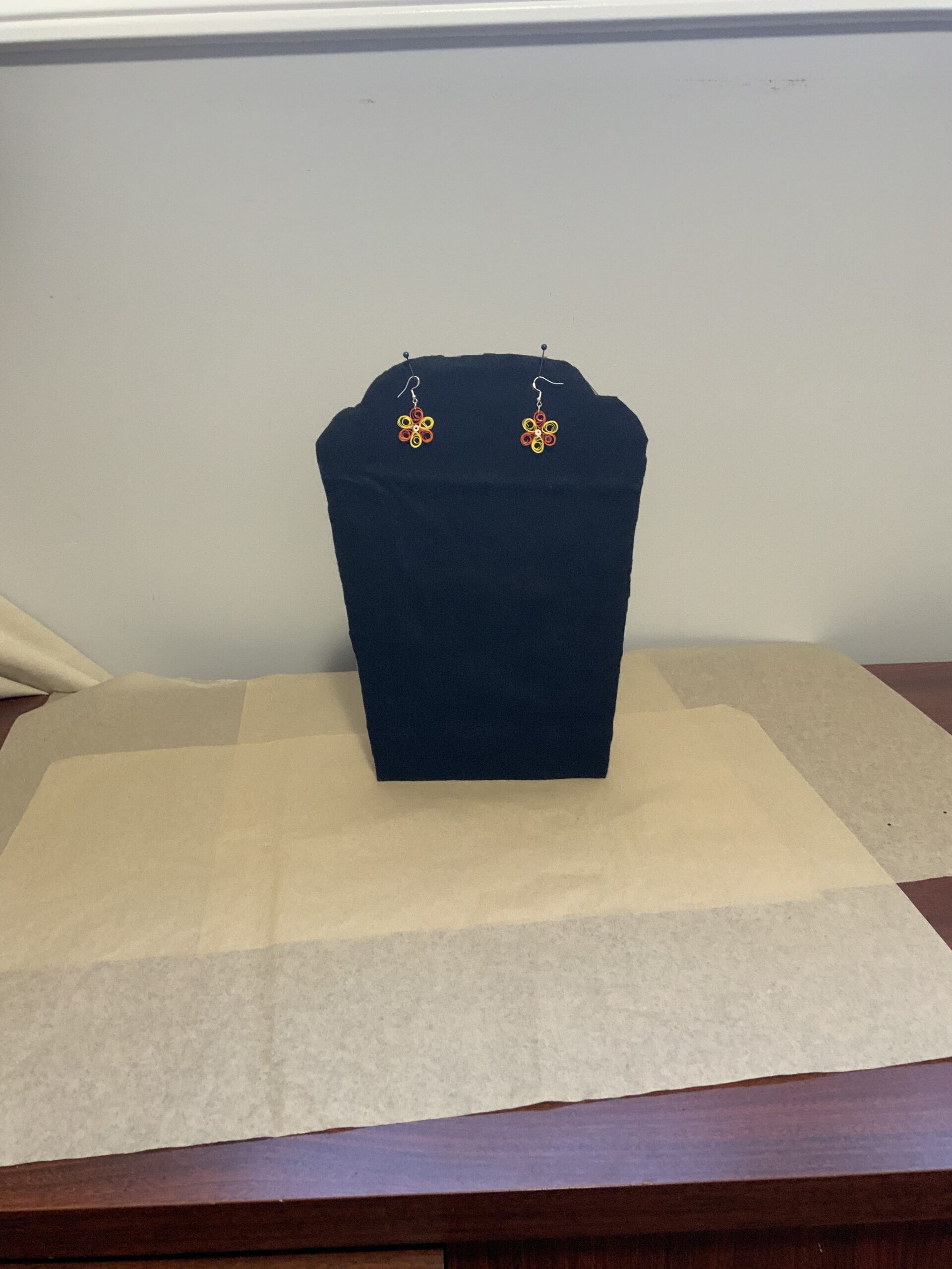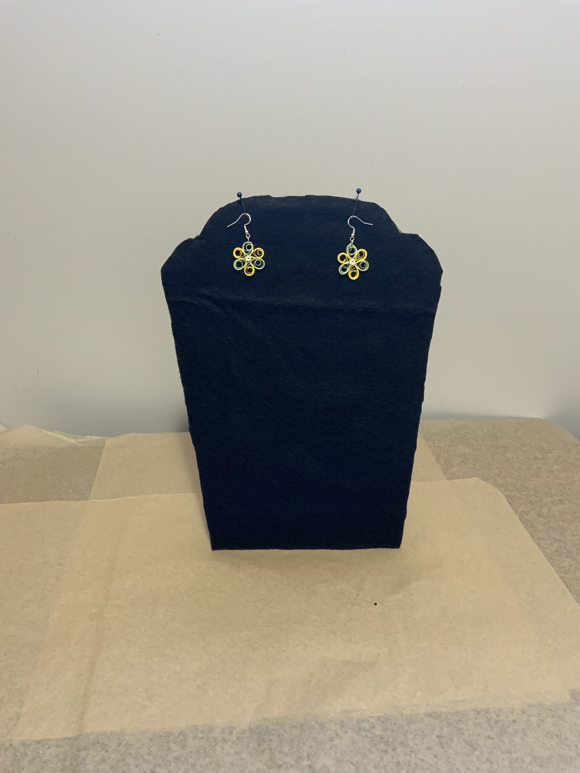 These earrings are water-resistant but not waterproof. Avoid wearing in the rain, shower, or while swimming. If exposed to water, gently blot with a paper towel and let air dry. Treat quilled jewelry like fine jewelry for best results.