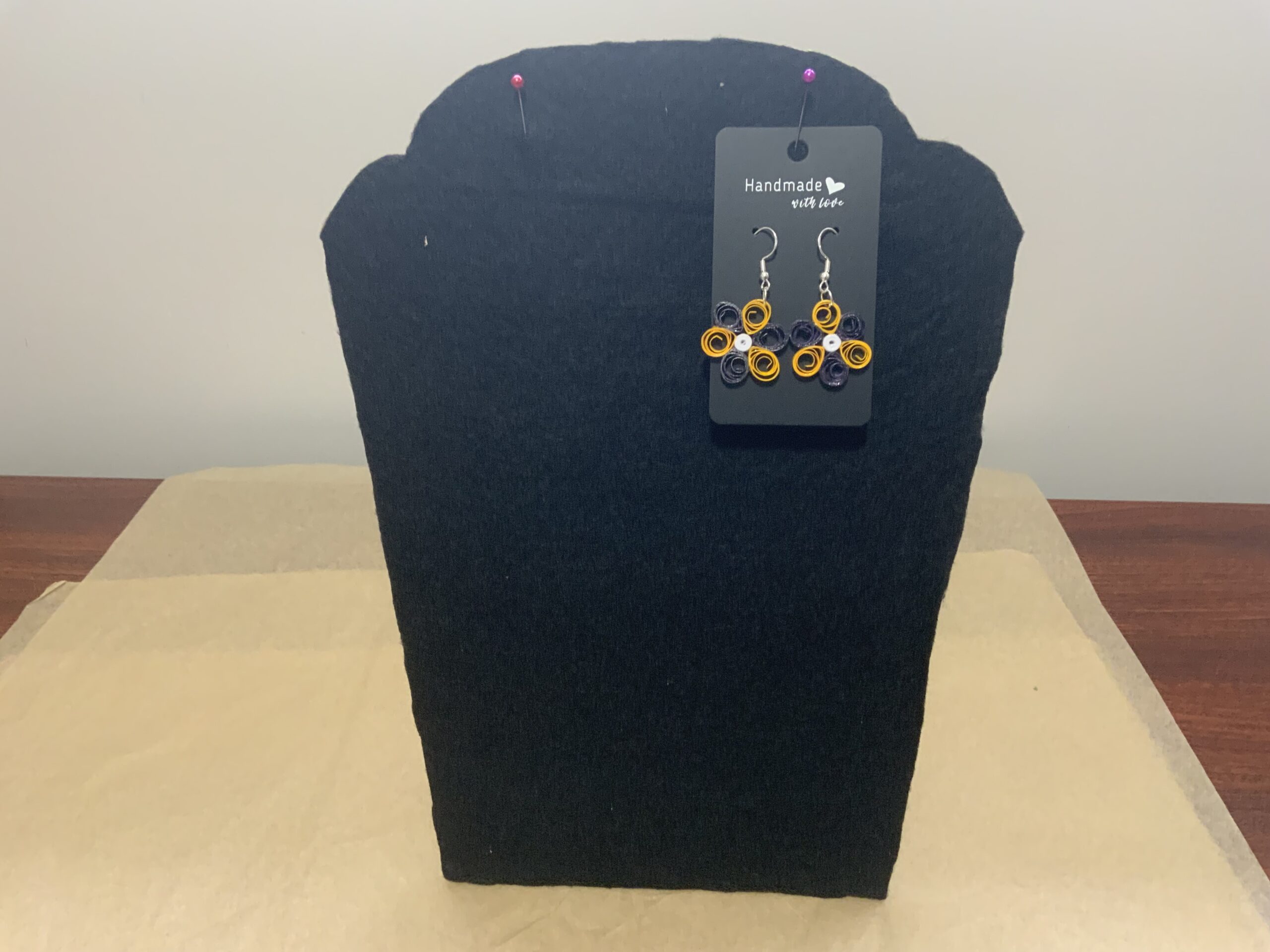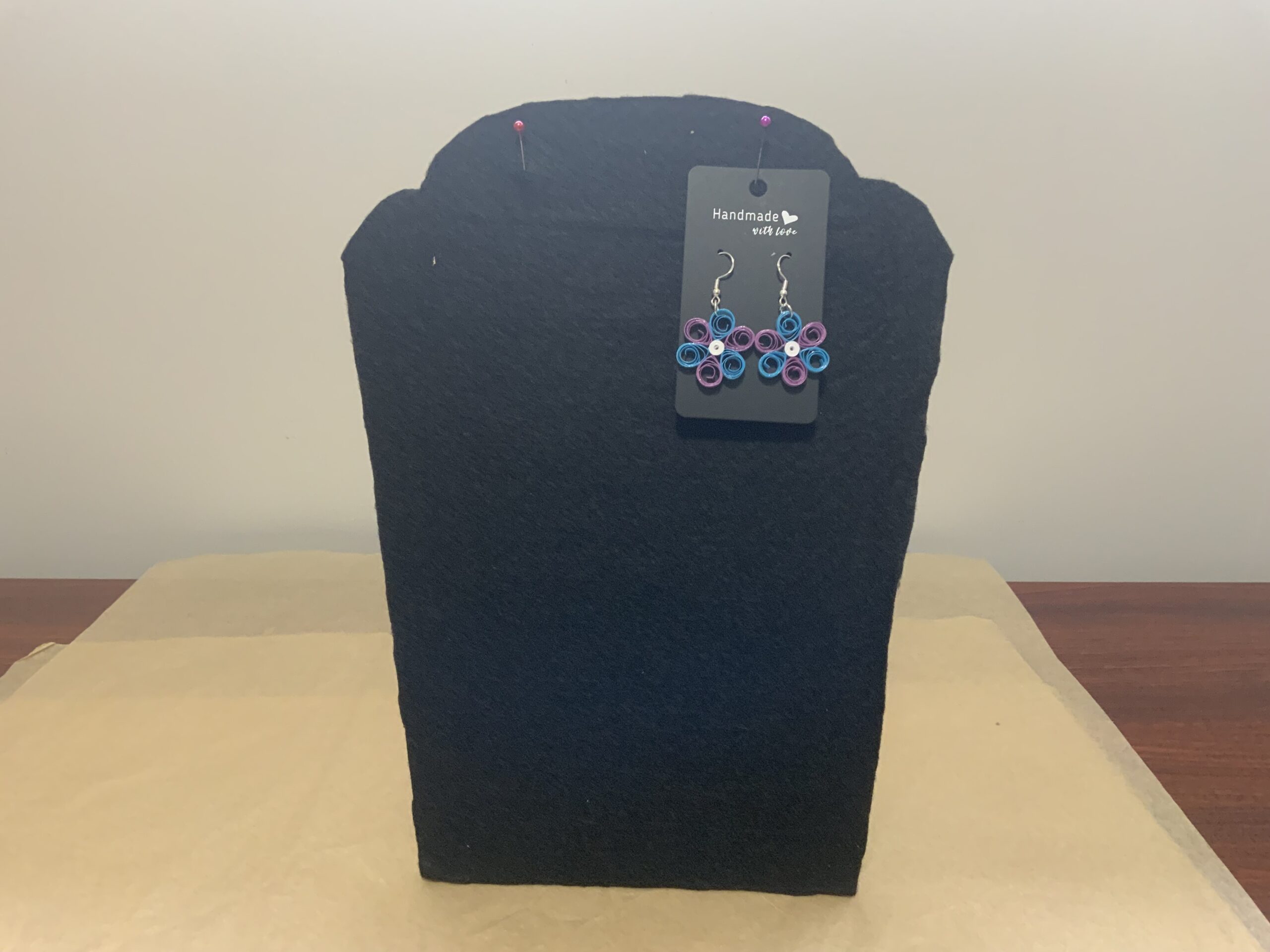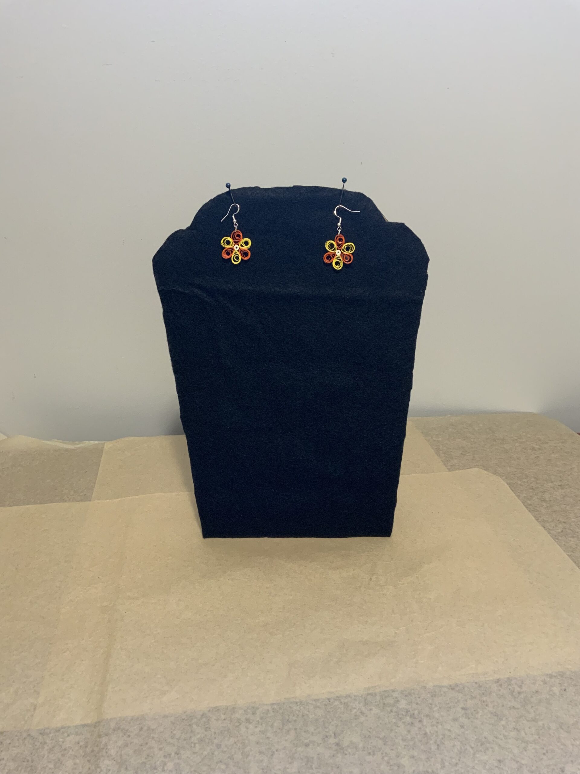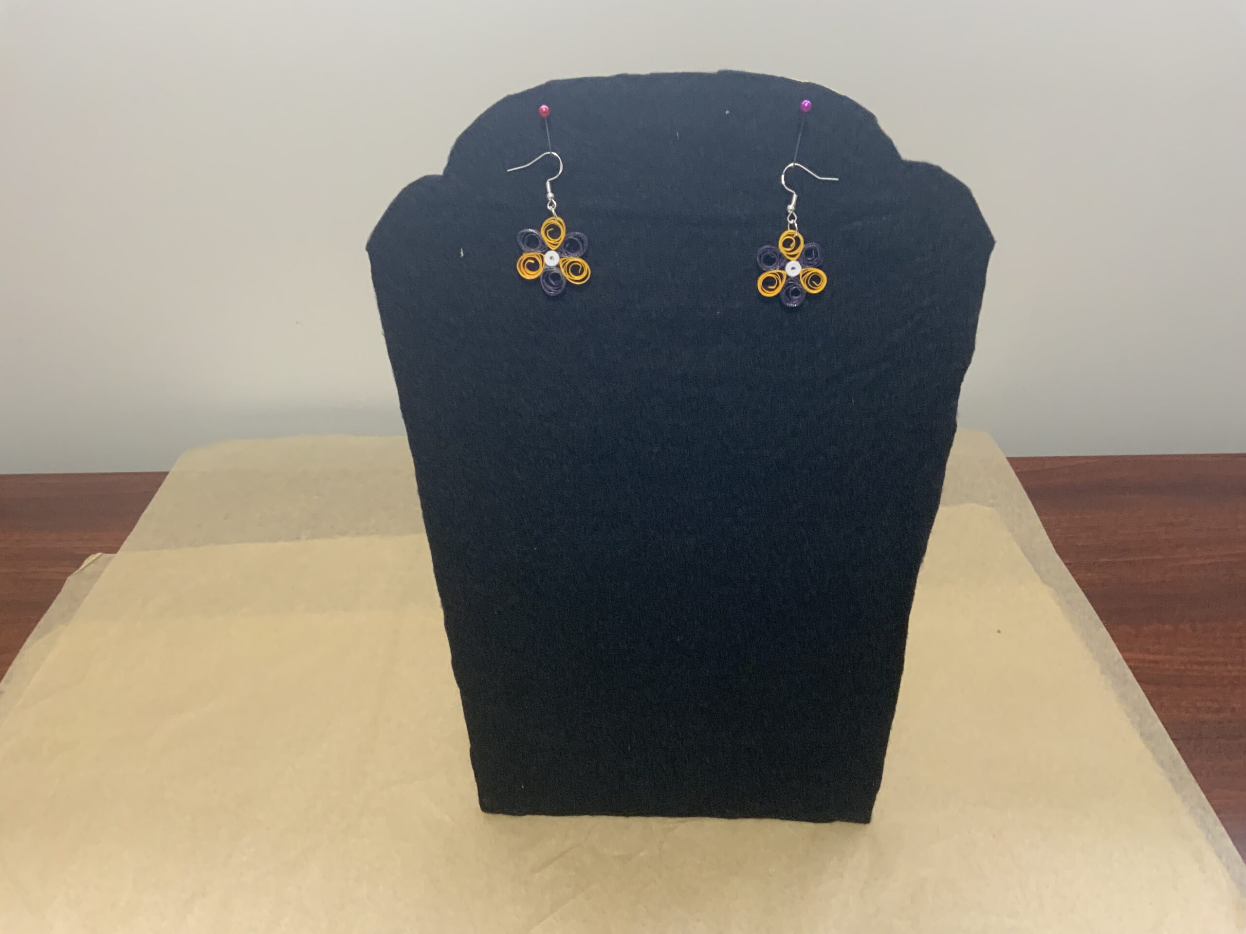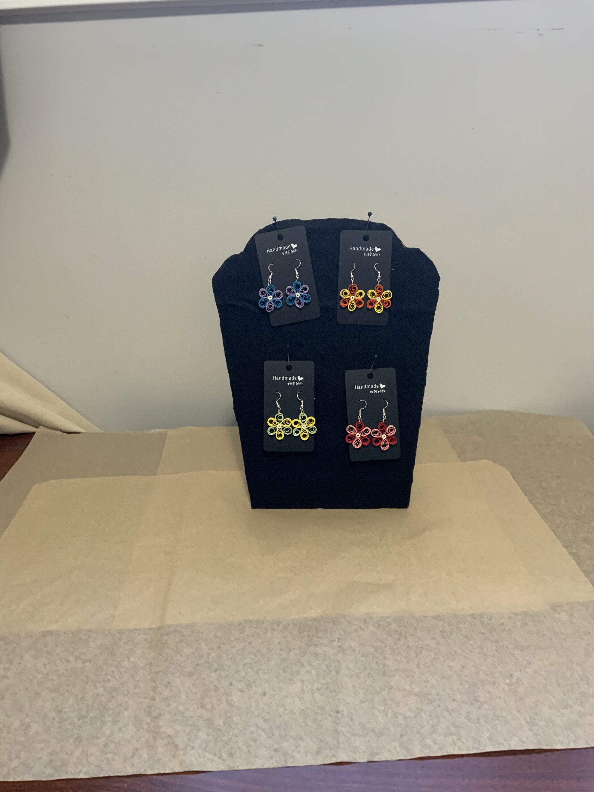 These adorable mini flower earrings are handcrafted using the art of paper quilling, combining two vibrant colors to create a delicate and unique floral design. Lightweight and sustainable, they’re the perfect pop of color for spring, summer, and everyday wear.